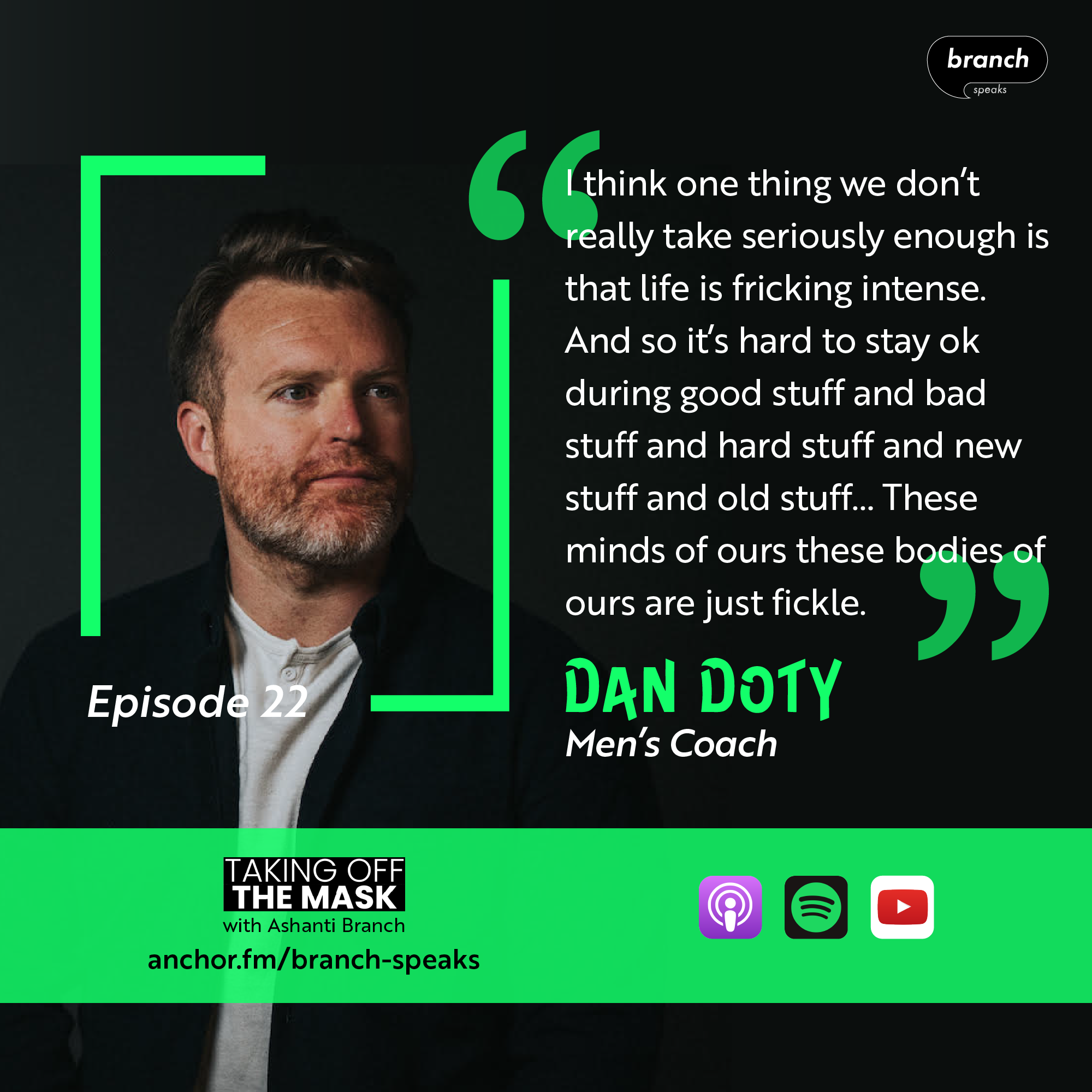 Everforward Club’s Ashanti Branch is joined by Dan Doty. Dan has done it all, from writing, to meditation teaching, to men's coaching, to wilderness exploring, to podcasting, to filmmaking... Ashanti's relationship with Dan includes an appearance on Dan's podcast, as well as a retreat into Joshua Tree with Evryman. In this conversation, Dan and Ashanti explore the fronts and backs of their masks, and they reflect on what it means to break the "rules" of masculinity, and whether there are any rules to begin with.