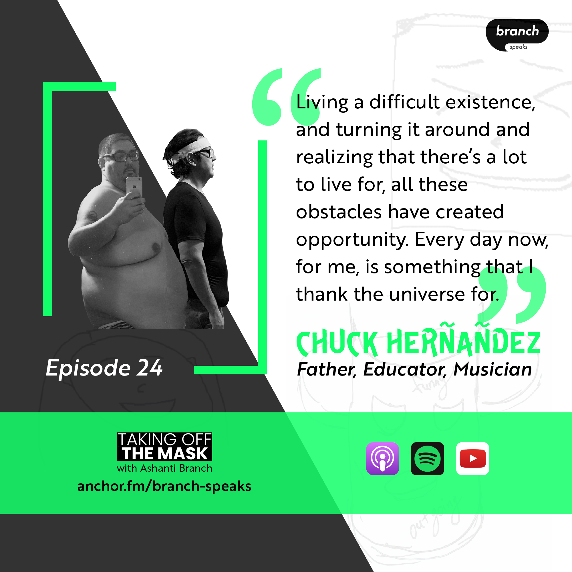 Ever Forward Club’s Ashanti Branch is joined by Charles Luis Herñañdez (Founder, Aqua Duck Enterprises), or “Chuck”. Among many things, Chuck is “a man on a mission to lose 300 lbs”. In this conversation, Ashanti and Chuck discuss how each man has gained purpose and inspiration from their friendship.