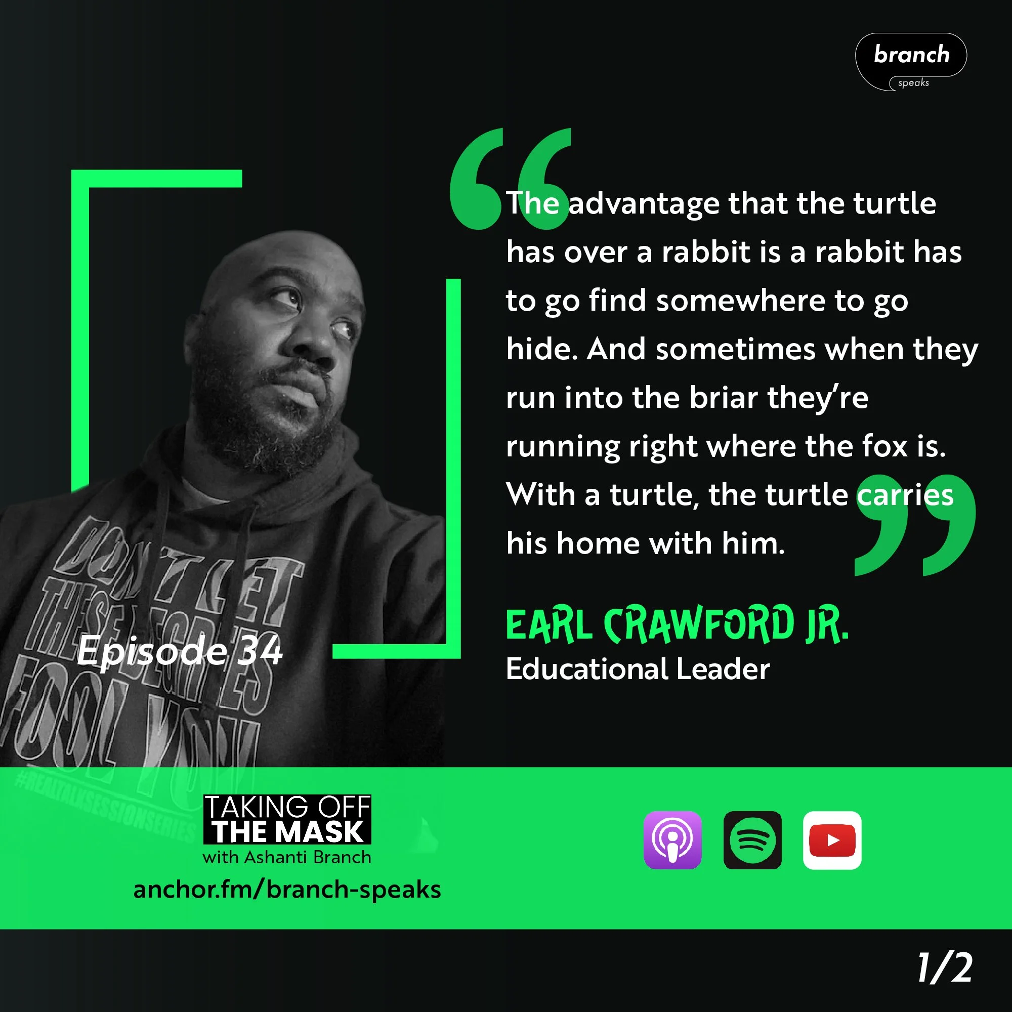 Ever Forward Club’s Ashanti Branch is joined by Earl Crawford Jr. Earl is a director and principal of multiple programs that serve at-risk youth. He views himself as a “servant leader”, but prefers to leave out the word “leader.” Ashanti and Earl work in the same field. But beyond discussing the world of education, they take off their masks and explore their fears, their family relationships, and how life can be summed up with a tortoise and a hare.