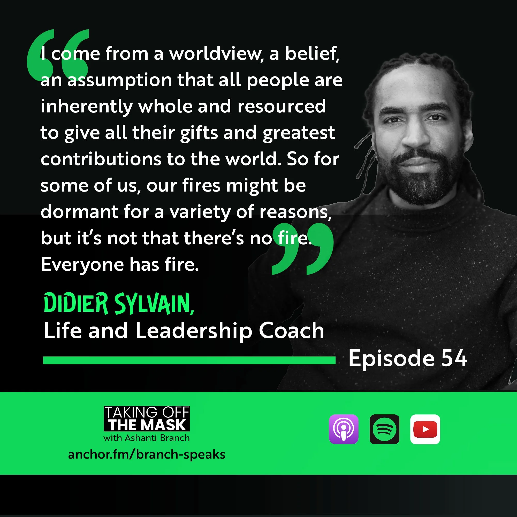 Ever Forward Club’s Ashanti Branch is joined by Didier Sylvain. As a life and leadership coach, Didier coaches individuals and groups, helping them become fuller versions of themselves. Both Didier and Ashanti’s work is motivated by a belief that a better future for humanity exists within each of its individuals; and, in this conversation, they imagine a future where more of us can be our “whole” selves. We hope you enjoy this episode!