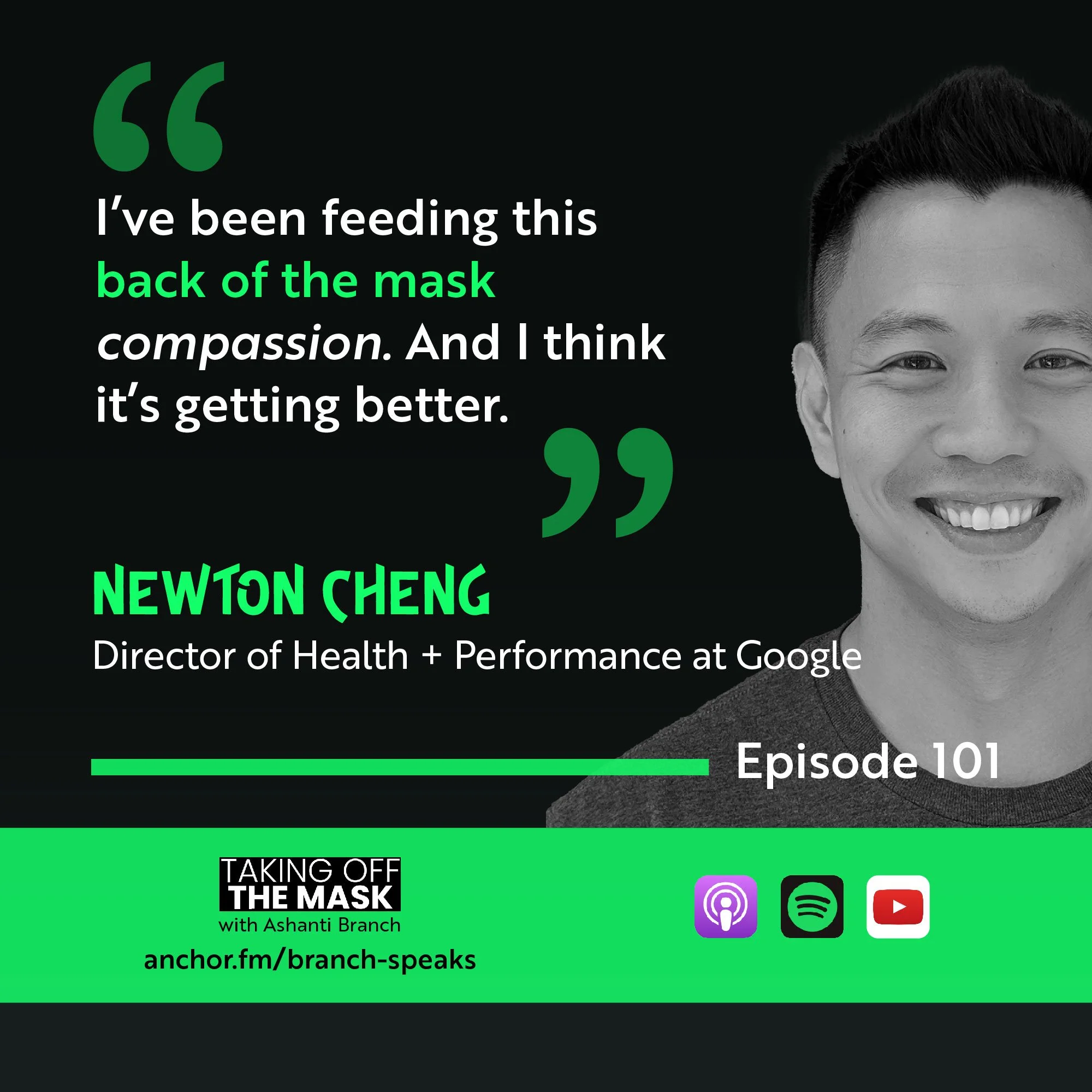 Ever Forward Club’s Ashanti Branch is joined by Newton Cheng. Beyond being the Director of Health + Performance at Google, Newton is a father of 2 girls, a husband of 13 years, and a world champion powerlifter. In January 2022, Newton went on mental health leave. And after sharing this story, the responses were more positive than he ever imagined they’d be. Now, Newton is charged up to continue the work of destigmatizing having conversations about your mental health, and he’s ready to build a movement. We’re excited for you to get to know Newton and his precise insights on himself as a leader and as a man.