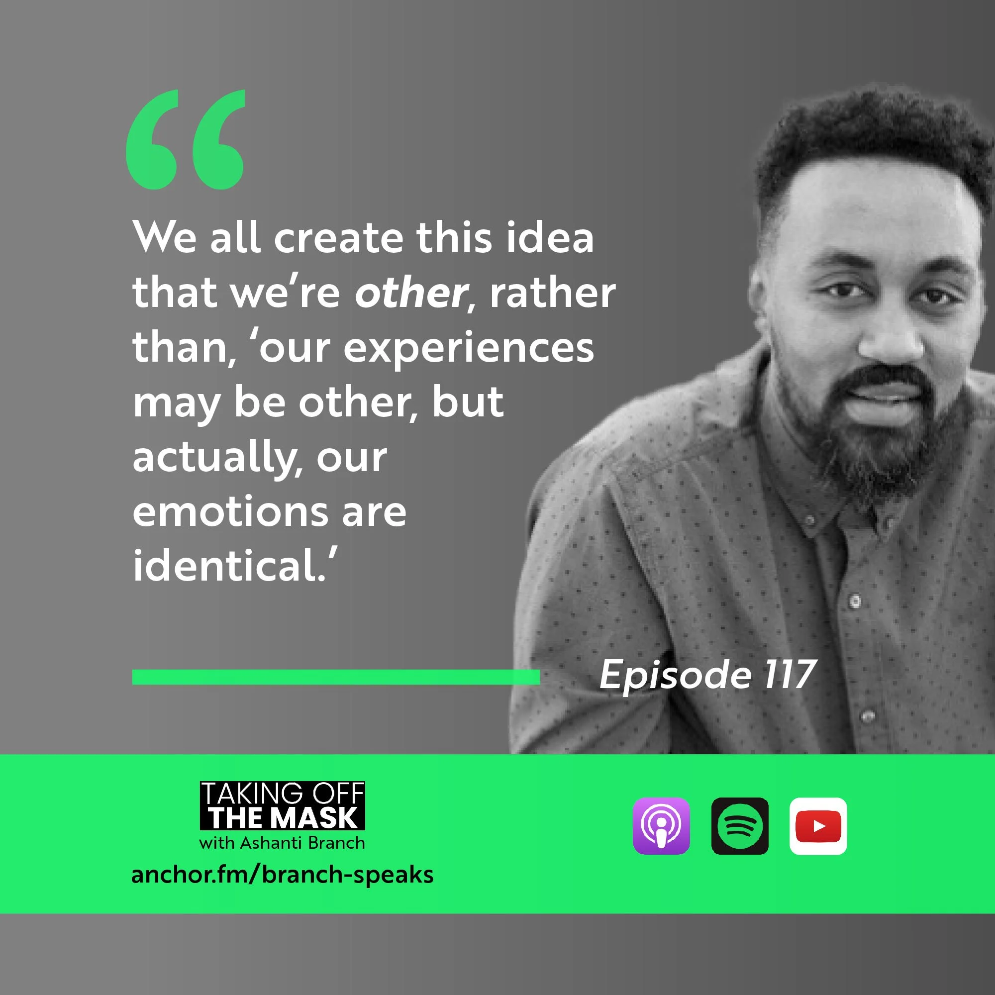 Ever Forward Club’s Ashanti Branch is joined by Gidai Maaza. Gidai is a son, father, husband, and community member. Having survived the refugee camp experience with his mother by way of Ethiopia in the early 80s, Gidai turned his trauma into awareness and insight that inform how he views people's pain. Now a Licensed Marriage and Family Therapist, we’re excited for you to see how Gidai has reimagined the mask analogy into a framework that helps him stay grounded and connected to all of humanity.