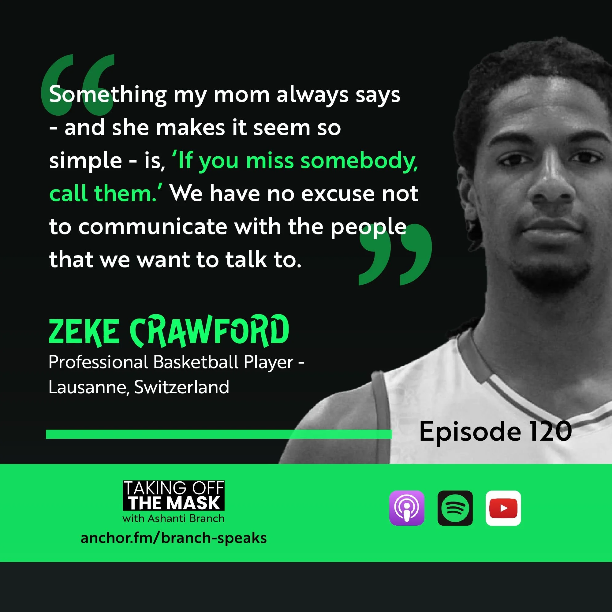 E120. If You Miss Somebody, Call ‘Em - with Zeke Crawford, Professional Basketball Player based in Lausanne, Switzerland