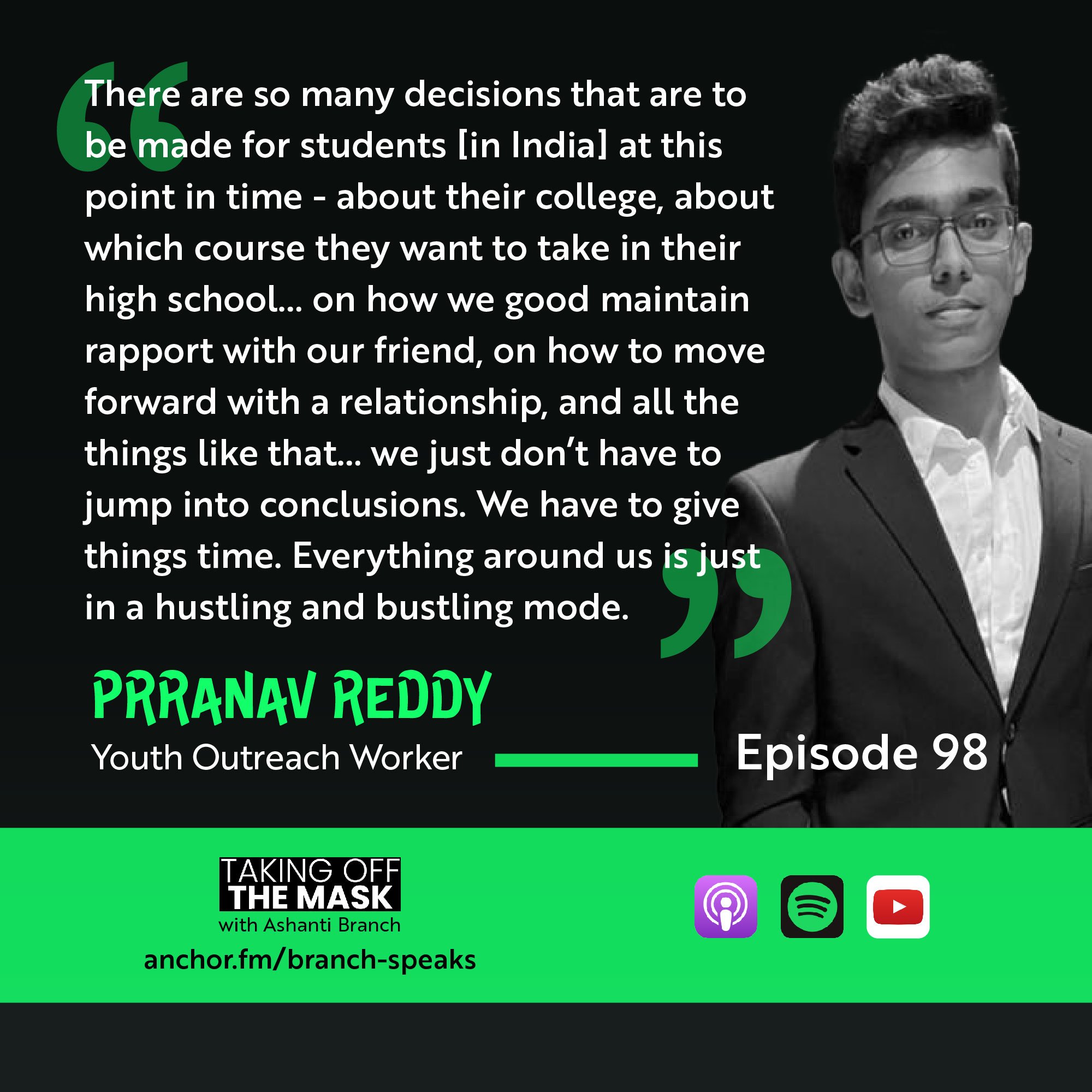 Ever Forward Club’s Ashanti Branch is joined by Prranav Reddy. A self-described “travel freak”, Prranav just graduated from high school in India. Prranav and Ashanti connected in 2018 when a monsoon warning canceled a Model United Nations event in India. It was clear four years ago that Prranav was a perceptive young man, invested in bettering the mental health of his community. Flash forward to today… and we’re excited for you to meet him :)